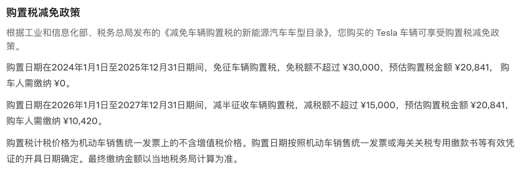 另外有意思的是,特斯拉近期在官网上还贴出了明年要征收购置税的提醒。