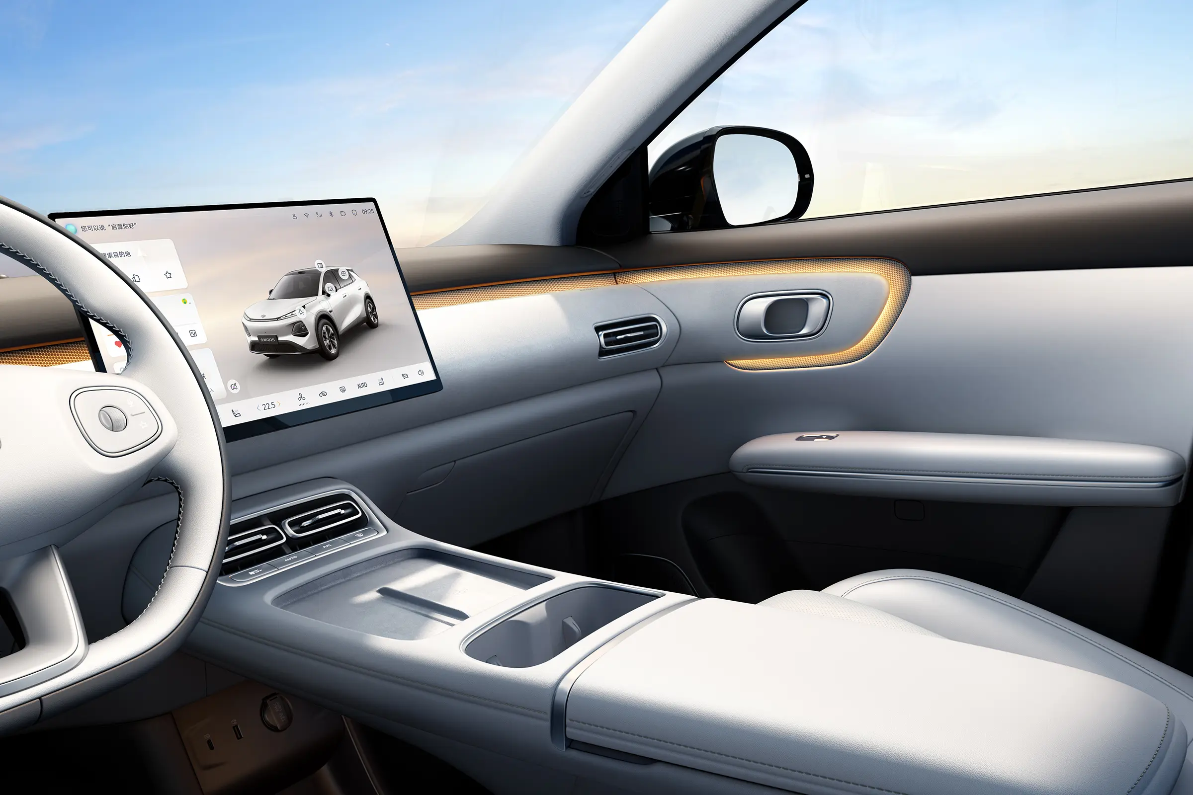 车机内置天枢智能座舱系统,匹配4纳米天玑MT8676芯片,同时车机还内置科大讯飞火星语音大模型,操作体验、智能表现以及交互能力上,相信要比现款在售车型提升十分明显。同时新车还配备了手机无线快充、电动尾门、无边框车门、256色氛围灯等配置,前排座椅还配备了通风/加热/按摩功能,并且副驾座椅还带腿托。更主要的是,新车全系标配激光雷达,相信在驾驶辅助能力上,可以具备城市领航以及泊车辅助等功能。