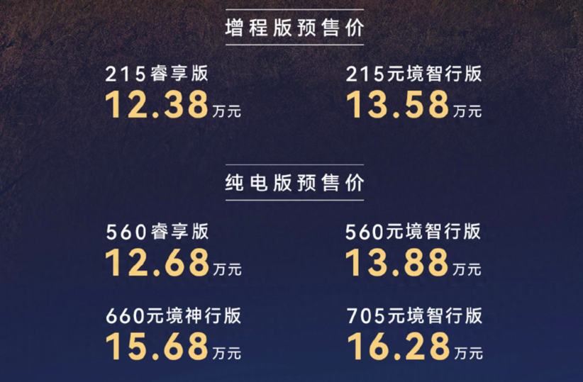 纯电版采用800V高压平台,搭载185kW、200kW两种电机,全系搭载宁德时代5C电池,提供560km、660km、705km三种续航,相比现款大幅提升,同时百公里能耗降低至最低13.1kWh。