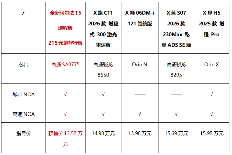 从年轻时尚外观设计到北汽神擎增程的硬核加持,从全系标配宁德时代电池到全球首个搭载骁龙8775舱驾一体解决方案,从麦格纳世界级品质到“近0醛0苯”健康座舱,全新阿尔法T5“一车满足全家需求”,让中级车“不再中级”,带给众多年轻家庭时尚动感、驾乘自由、智能舒适、可靠安全的SUV新体验。