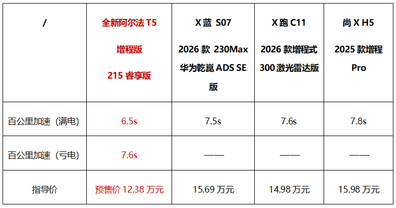 在家庭用户关心的动力方面,全新阿尔法T5增程版峰值功率200kW,峰值扭矩365N·m,满电零百加速仅6.5秒,即使在亏电状态下零百加速仍能保持7.6秒优异成绩,爬坡过坎、高速超车全部游刃有余。无论满电馈电,全新阿尔法T5性能随时在线,“快人一步”尽享百万级别澎湃驾控。
