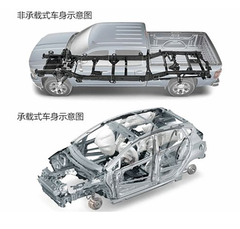 越野车一定是采用非承载式车身的车型,所谓的非承载式车身实际由两大部分组成。