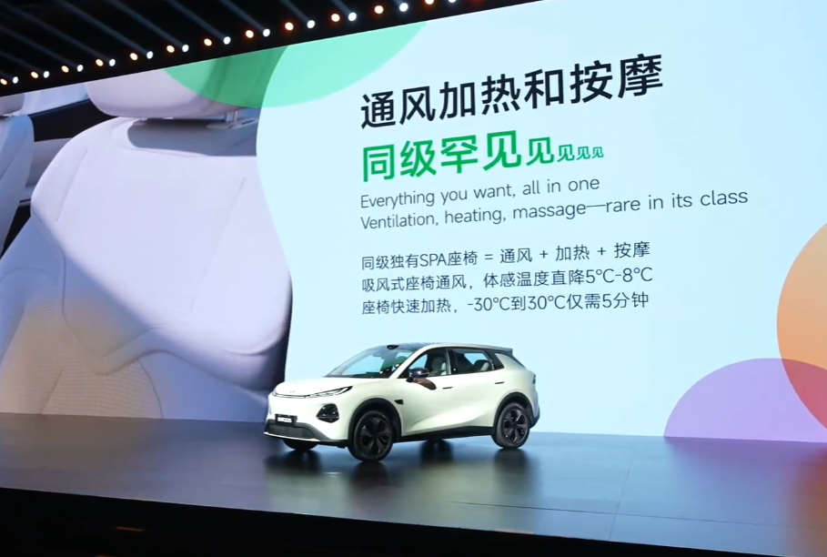 乘坐舒适性方面,前排具备8点按摩/通风/加热等功能,副驾座椅还带腿托,二排靠背角度三档可调,够舒适。