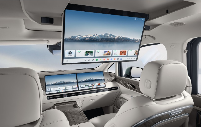 高山7智能科技在线,座舱内配备15.6英寸2.5K双联屏、12.3英寸液晶仪表和26英寸 SR-HUD抬头显示,搭载8295座舱芯片,24G+256G内存,运行流畅,支持六音区语音识别,支持CarPlay、Carlink、HiCar手车互联。