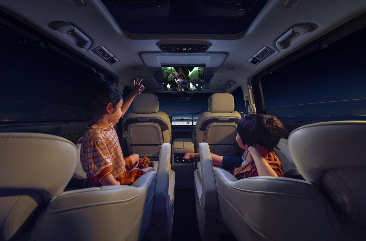 空间和舒适性是家用MPV的核心竞争力,高山7在这方面表现十分出色。它采用2+2+3的7座座椅布局,二三排座椅采用共轨设计,灵活性很高。二排座椅配备双活动扶手,标配加热和通风功能,还能选装双实体按键悬浮式零重力座椅,长途乘坐也能缓解疲劳。第三排座椅靠背角度可调,即使是成年人坐进去也不会觉得局促。为了方便老人和小孩上下车,后排车门设计了双层踏板和两段式长扶手;二三排都配有侧窗遮阳帘,夏天能遮挡阳光,提升乘坐舒适度。后备厢不仅空间充足,还带有220V车载电源,露营时能给电器供电,再加上后排17.3英寸娱乐屏和冰箱,完美契合家庭出行、露营等场景需求。