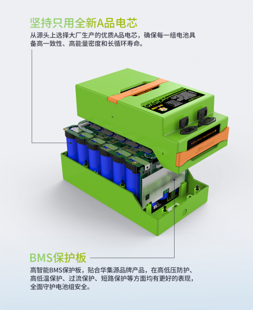 华集源深耕“两轮+三轮+低速四轮”全场景,打造了覆盖20Ah至180Ah的全品类锂电矩阵:从适配日常通勤的22、35型号系列,到解决长续航需求的45、60型号系列,再到适配三轮和低速四轮的大型号70-160型号系列,每一款产品均坚持“全新A品电芯”战略。