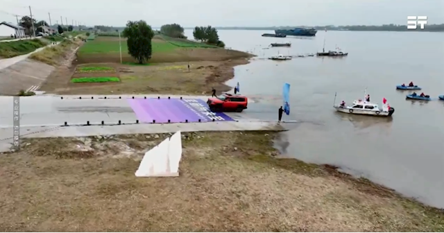 此次挑战经相关部门专项批准,全程在专业保障下完成。为确保万无一失,挑战前做足了安全准备。驾驶员不仅接受了专项培训,还全程穿着救生衣,江面同步部署多艘快艇护航。