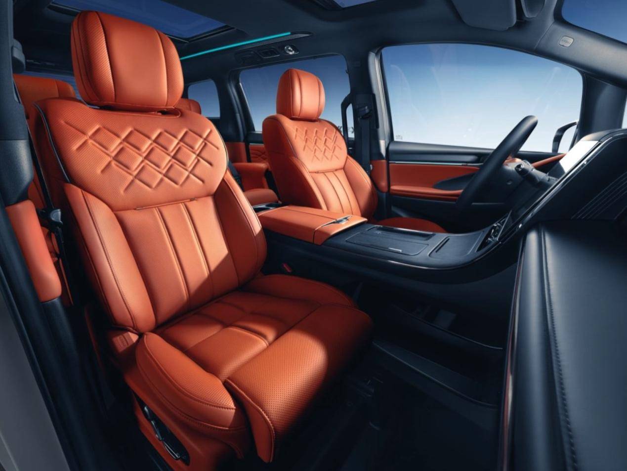 内饰部分,向往M8宗师版采用了环抱式座舱设计,搭配12.3英寸的内嵌式液晶仪表与15.6英寸的悬浮式中控屏,辅以镀铬饰条的点缀,展现出强烈的高级感。中控台的“横两纵”设计充分整合了翻盖储物格、无线充电面板和双杯架,兼顾了美观与实用性。在舒适性配置上,新车配备了双天窗、二排小桌板和物理遮阳帘等实用设施,全系标配双侧电动侧滑门与电动尾门,并使用隔音玻璃与隐私玻璃,进一步提升了后排乘客的舒适体验。座椅布局继续采用2+2+3的七座形式,第二排独立座椅配备了触控面板,方便乘客调节座椅功能。