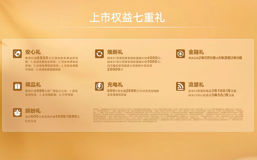 其中,2026款纳米01售价:5.98万元-9.28万元,限时焕新价:5.88万元-8.88万元。