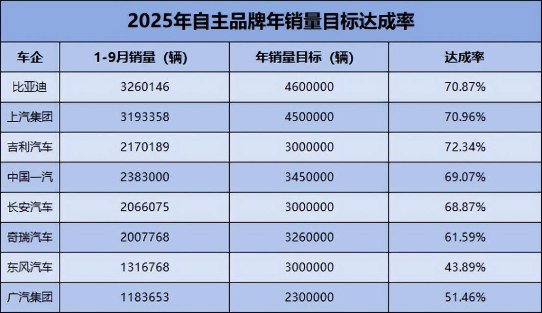 当 2025 年的车市冲刺战进入最后阶段,目标达成率的分化图谱已清晰勾勒出中国汽车产业的进化轨迹。