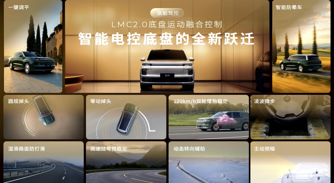 更关键的是,零跑自研的LMC2.0底盘融合控制系统,让它具备空悬一键调平、三电机圆规掉头、爆胎稳定控制等功能。