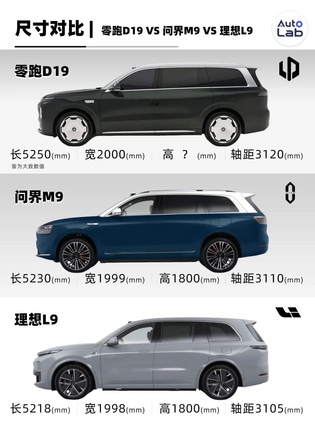 尺寸上,D19车长5.2米、车宽近2米、轴距超3.1米,标准的“9系”体量。与问界M9、理想L9均处于同一水平。