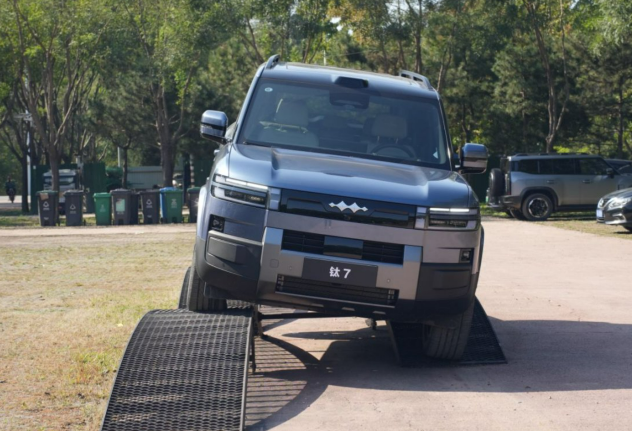 更核心的是“绕行破局”能力:模拟“城郊小路堵车,旁有土路可绕”场景时,深蓝能通过魔毯系统将离地间隙升至240mm,配合四驱+两把锁轻松通过;钛7离地间隙仅210mm且无差速锁,尝试时后轮打滑,只能凭借大马力生生“碾出来一条路”。对用户来说,这是“别人堵半天,我提前到景区”的差距,省下的时间能多陪家人享受,这正是堵车时的核心价值。