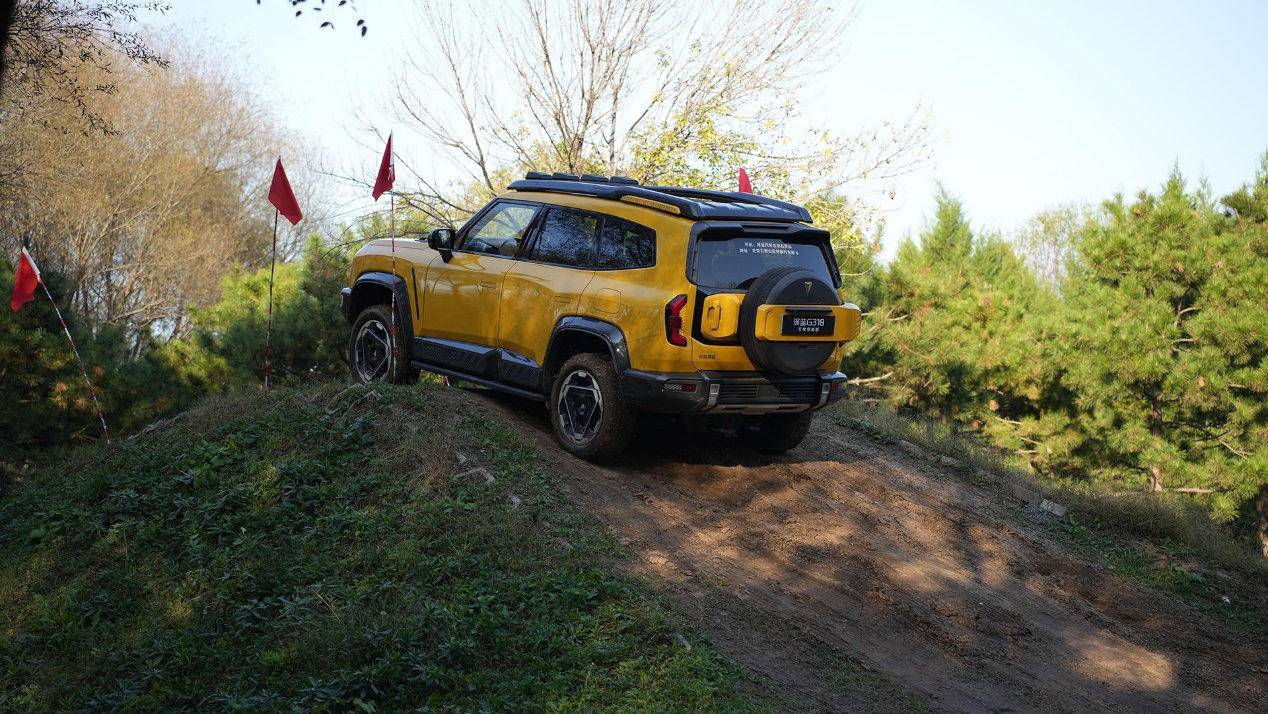 爬坡测试这里只说纵向通过角这一点,深蓝G318本身最小离地间隙就比钛7高了30mm,同时又占了轴距相对更短的优势,也就是说有可能钛7刚好被“坡尖托住底盘”的路况,深蓝G318有可能会顺利通过,这是硬件差异,稍微懂点汽车和越野常识的车友应该都了解。