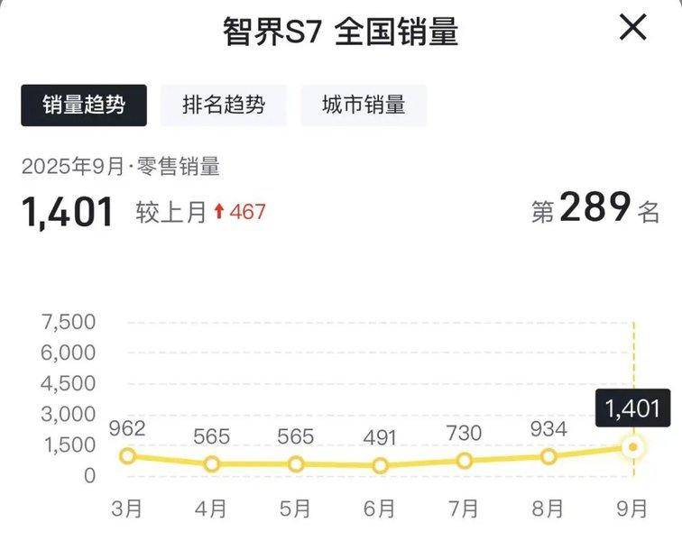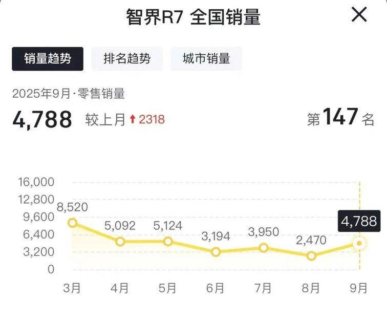 但进入2025年后,两款主力车型均陷入销量颓势:智界S7月销长期徘徊在千辆以下,成为常态;智界R7也未能延续此前势头,销量呈现阶梯式下滑。市场甚至流传出"一年磨三剑"的调侃,暗指其产品迭代与市场反馈的脱节。