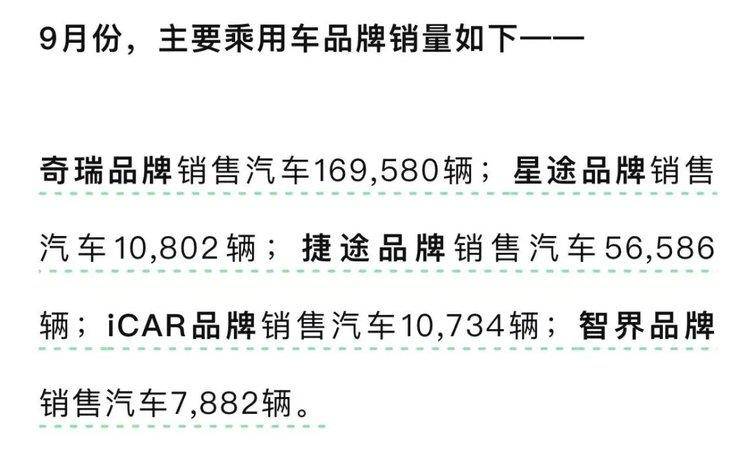 9月作为智界双车上市后首月,无论是智界还是鸿蒙智行都没有公布9月销量,不过,奇瑞汽车公布了销量为7882辆,讲真这个销量跟之前销量相比,没有太大变化,也没有之前智界销量高峰时销量高。