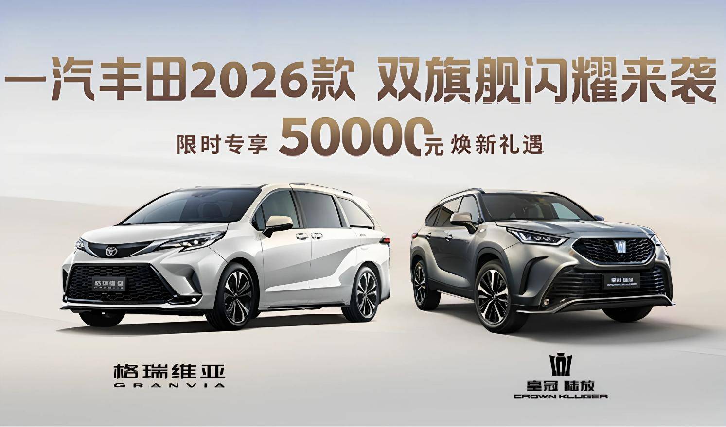 10月18日,一汽丰田2026款皇冠陆放和2026款格瑞维亚全面焕新上市。其中2026款皇冠陆放豪华配置升级,官方售价28.48万元起,全系大七座,入门即高配,竞争力大幅提升;2026款格瑞维亚,起售价29.98万元,旗舰版配置升级同时,价格直降1.7万元;新推高配四驱版,复杂路况通过性更强,乘坐更舒适,增配不增价。此外,双车均享受至高5万元的综合权益,以超值礼遇助力用户美好出行。