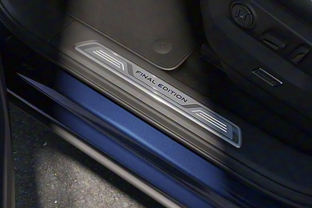不过说到细节,大众途锐确实在细节上做了很多的改变,比如所有车型都在车窗边、踏板、换挡杆上刻了Final Edition的标识,德国版配真皮座椅,有三十种颜色的氛围灯,内饰用木纹或者铝饰板,R版更特别,带蓝色卡钳和插电混动系统。