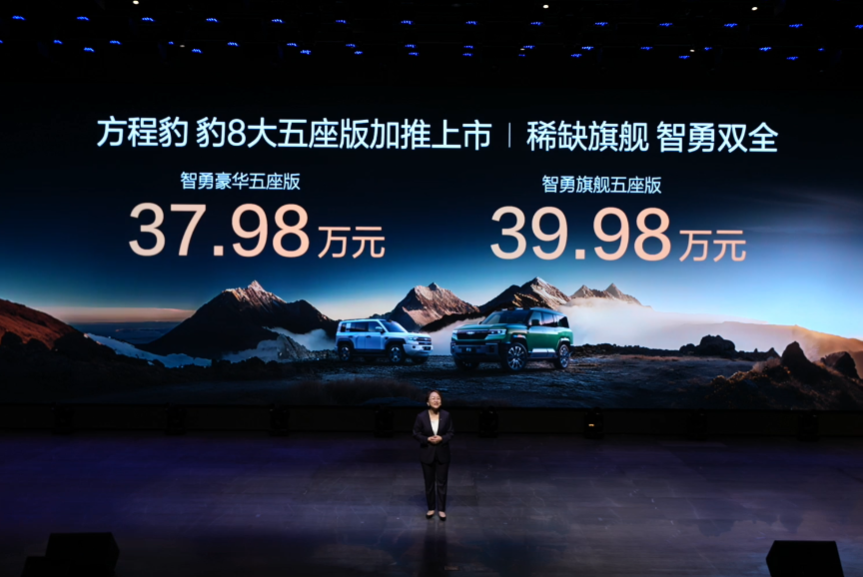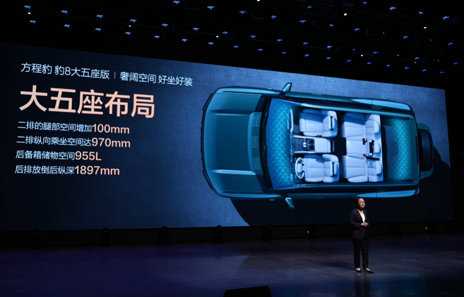 豹8大五座版上市,售价:37.98万元-39.98万元,由此,豹8已涵盖五座、六座、7座三种座椅布局。