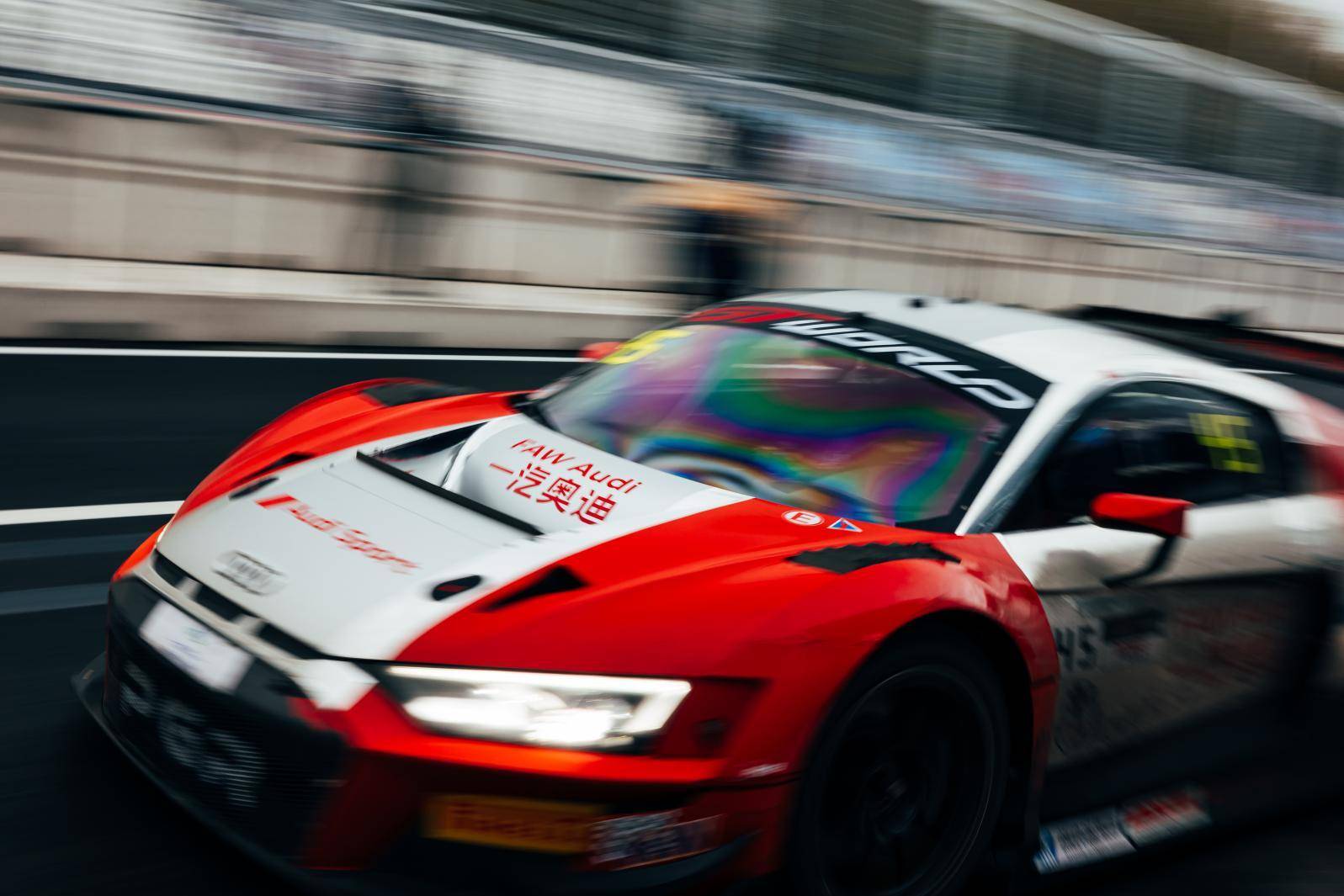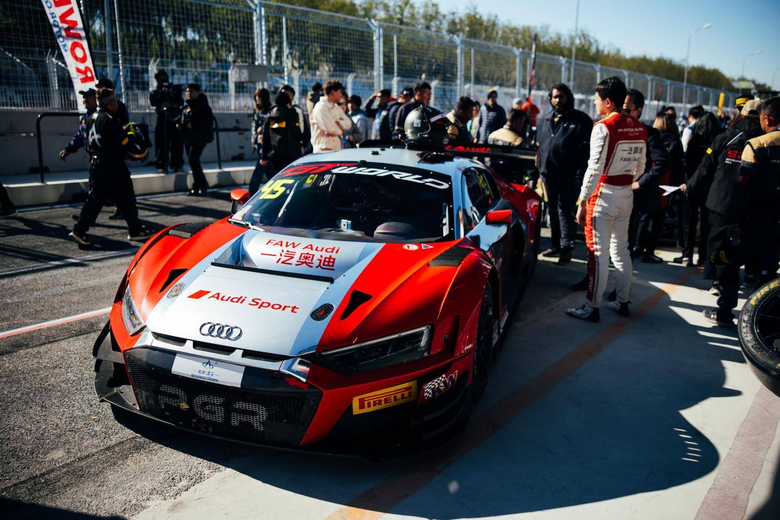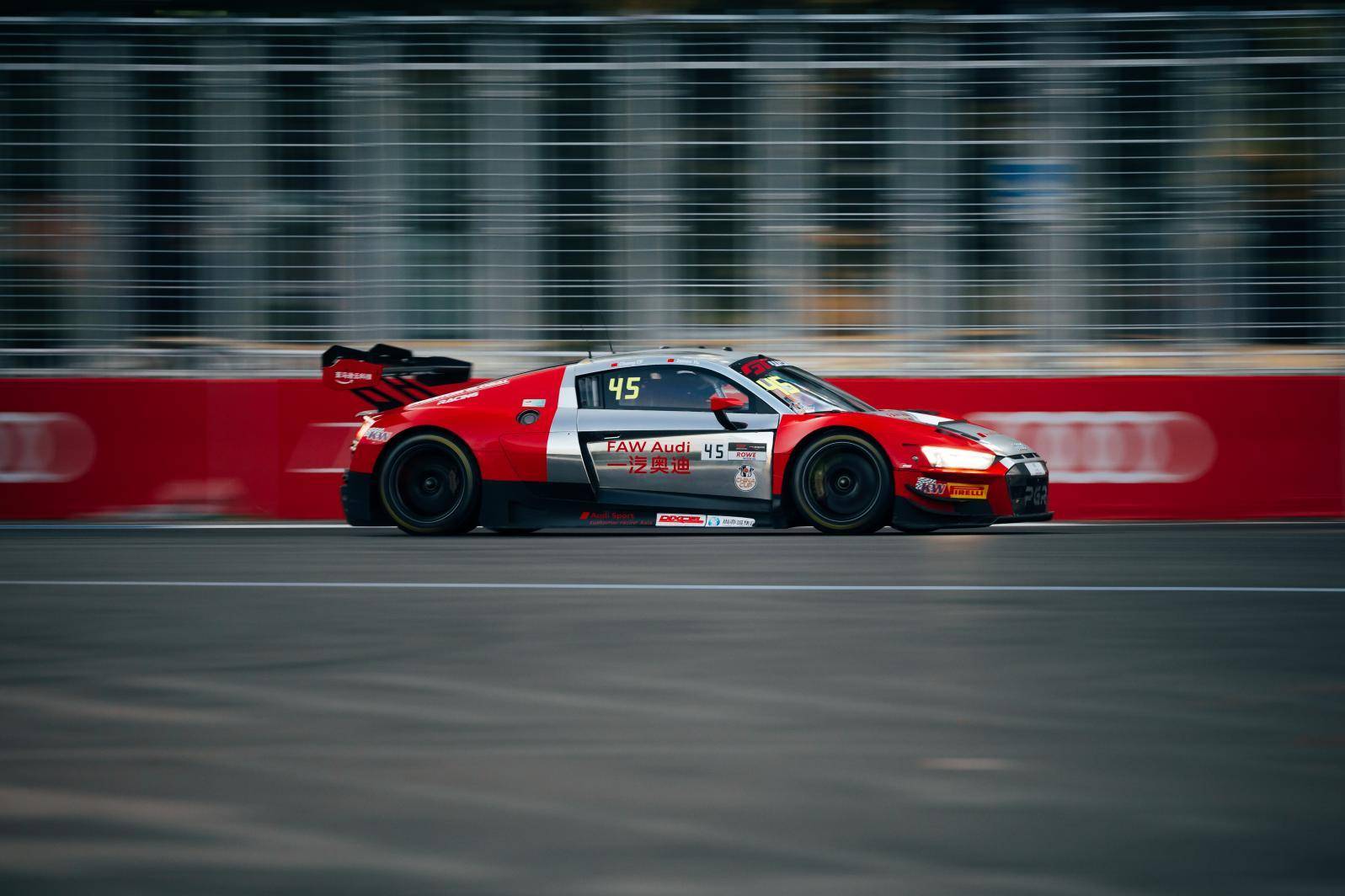 收官战举办地——北京亦庄通明湖街道赛道,全长4.9公里,最高设计时速达299公里/小时,完美融合城市景观与专业赛道特性,对车辆性能与车手技艺提出双重考验。一汽奥迪魅影车队派出#45赛车出战,其姊妹车队奥迪运动亚洲魅影车队亦携46号赛车同场竞技。除程丛夫、余快外,包金龙、唐伟枫等实力车手也共同出征,驾驶有“百冠王”之称奥迪 R8 LMS GT3 赛车。它以V10发动机为心脏,更以源自赛道的尖端科技为骨骼——高强度轻量化车身、高效空气动力学与精准底盘调校全面赋能,铸就其无可挑剔的赛道机器本质。