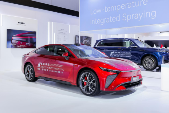 外观工艺方面,星纪元ES展示了全新液态金属车漆。该车漆采用全新一代的纳米级水性配方与10层纳米陶瓷喷涂工艺,漆面厚度增加30%,耐刮擦性能提升30%,有效减少了日常使用中的细微划痕,并且在光线照射下,漆面呈现出如液态金属般流动的光影效果,细腻且通透。同时,全新液态金属色车漆严格遵循环保健康理念,采用环保水性色漆,VOC含量低于50克/升,从源头保障车内空气质量,为用户带来健康安全的用车环境。