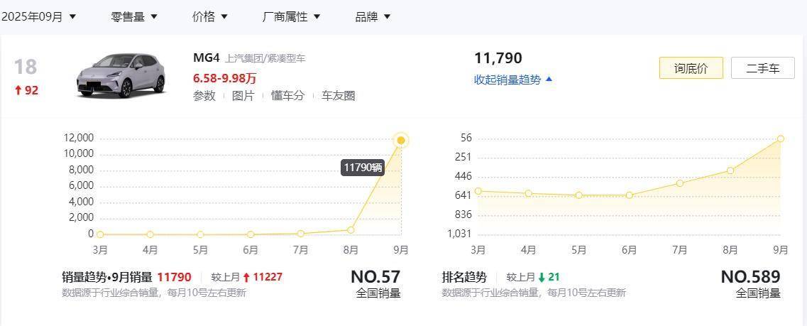 兄弟们,没想到,8月29日才上市的全新MG4,居然在9月份就出现了要卖断货的节奏。要知道,9月份一过完,全新MG4的零售销量数据居然就达到了11790辆,上汽MG上一次这么火的车,还要追溯到MG6/MG5时代,看样子,这次的全新MG4还真是找准了国内消费者的购车需求。