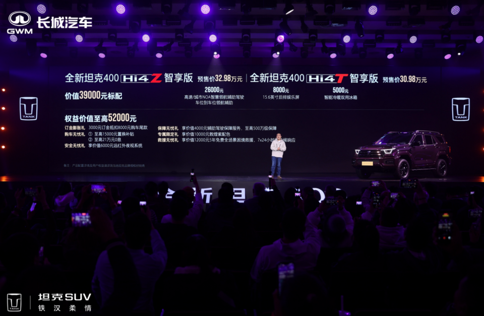 全新坦克 400 的预售,既是对传统燃油越野车的降维打击,也是对城市 SUV 的功能补位。如果你刚好在 30-35 万预算区间,追求 “可城可野” 的全能车型,现在 3000 元订金锁定权益非常划算。如果不着急提车,也可以等 12 月正式上市看是否有额外优惠。但记住:带激光雷达的 Hi4-Z 版产能有限,首批车主大概率能抢到 “敦煌紫” 限定色,早订早享受!你觉得坦克 400 这波预售诚意如何?Hi4-T 和 Hi4-Z 你会怎么选?