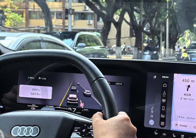 无图L2级智驾的实用性,在汽博中心的拥堵环线上被彻底激活。系统自动跟车时,能根据前车加速节奏线性调整车速,不会出现“忽快忽慢”的顿挫;遇到右侧车道车辆加塞,会小幅收油让行,而非强硬博弈;甚至在过弯时,转向角度的控制能精准贴合车道线,无需手动修正。这背后藏着奥迪与华为的深度协同:奥迪的VMM底盘控制技术,把华为算法的“指令”转化成了更细腻的车身动态,避免了不少新势力智驾“功能能实现,但体验很生硬”的问题。