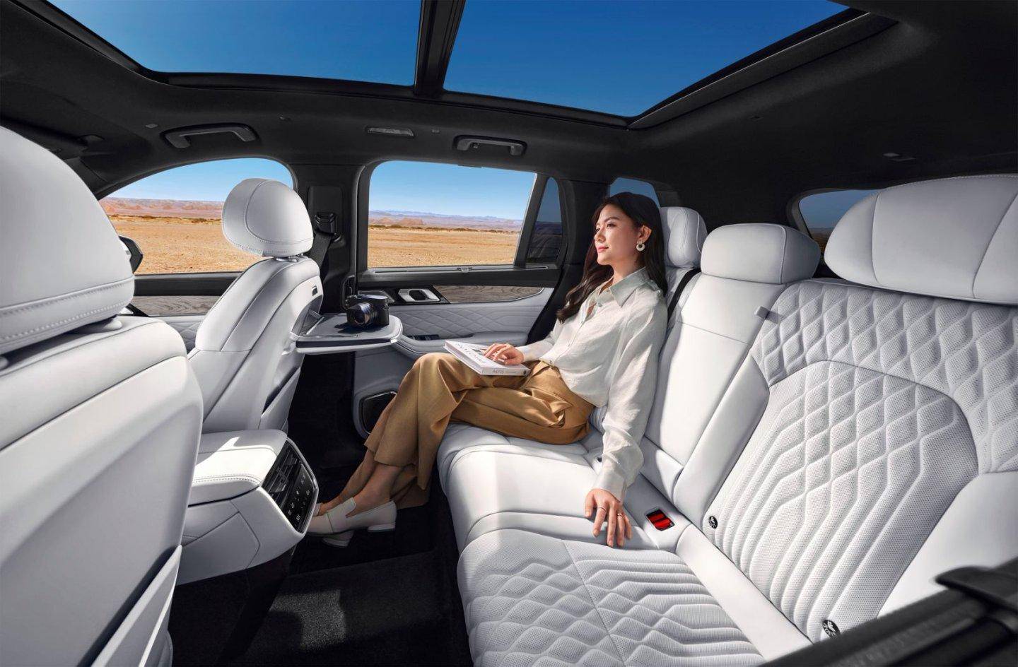 难道这就算完事了吗?当然不会,2026款领克09四驱探索版在车内豪华以及舒适体验方面,可谓是“一步到顶”。首先针对车内后排,新增了多功能中央扶手以及二排小桌板,满足长途出行的舒适与便捷需求,同时也能满足大家的商务属性;同时全车座椅均采用Nappa真皮包覆,四座均配备通风/加热/按摩功能,身处二排也能获得舒享体验;与此同时副驾还新增280mm的4向电动调节腿托,别说20万级,即使身处30万级也丝毫不逊色。