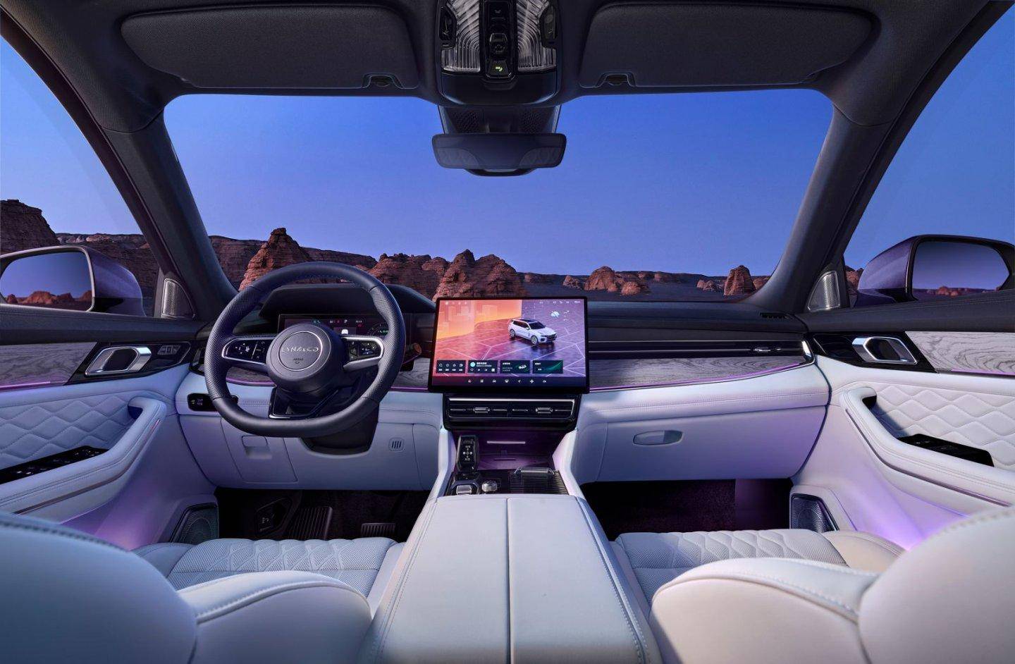 既然说到年轻人选车,整车智能化表现也同样不能落后,而2026款领克09四驱探索版也正式“燃油车智能落后”的颠覆者。老款车型上的12英寸车机大屏被升级为15.4英寸,配合12.3英寸的液晶仪表以及12.8英寸的W-HUD,可实现多屏联动;LYNK OS N智能座舱系统配合8155芯片,深度融合DeepSeek的自研AI大模型,让人机交互更为智能,响应迅速、操作流畅。