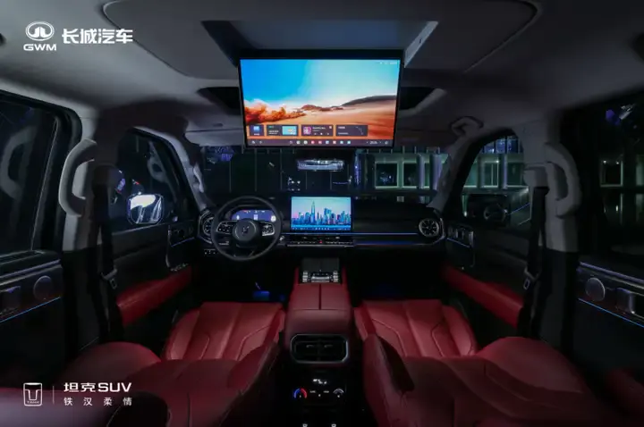 全新坦克400在满足强越野、泛越野、城市通勤全场景出行需求的基础上,同时通过“冰箱彩电大沙发”带给全车乘员更加舒适便利的出行体验。
