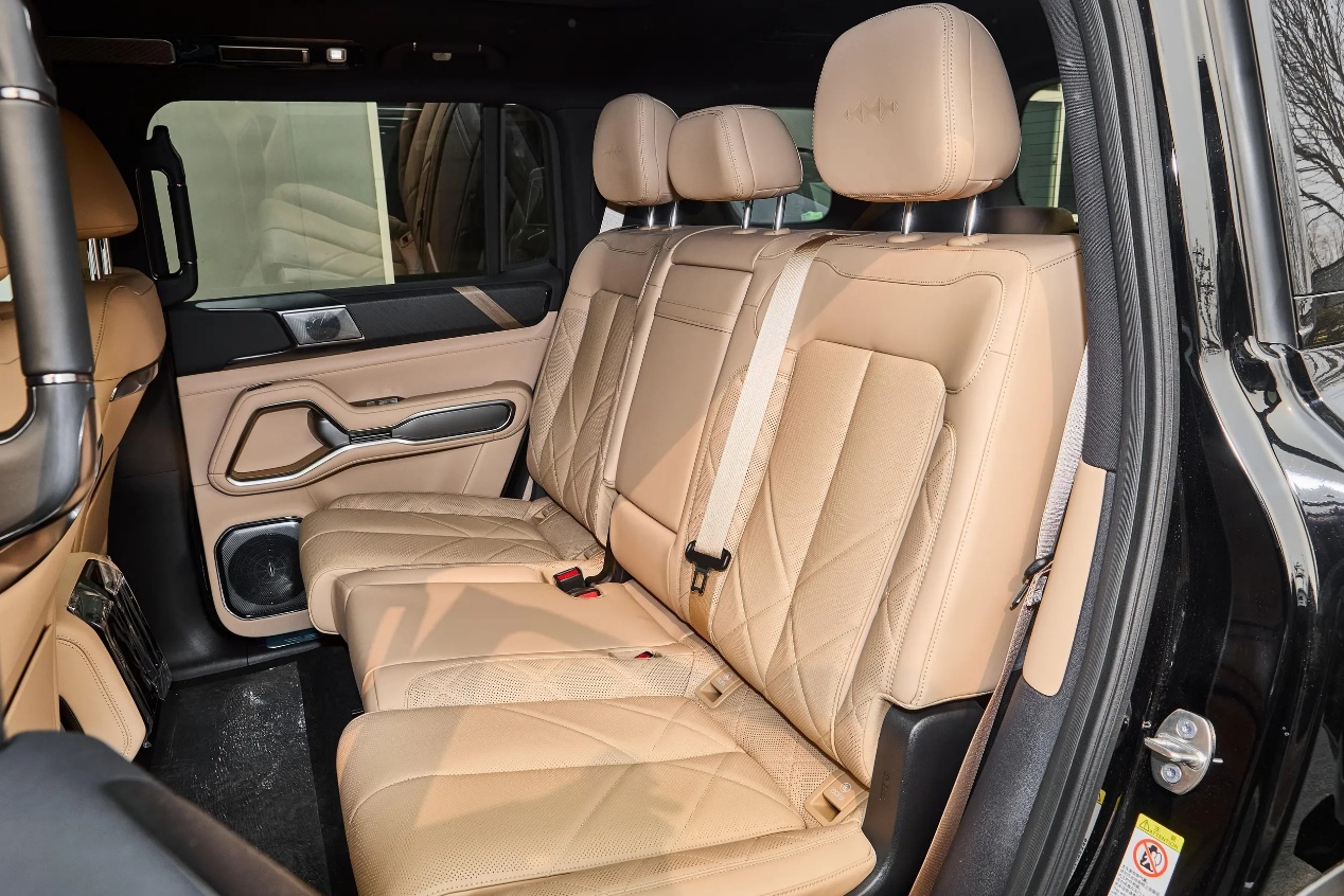 豹8目前的座椅布局有两种都是三排座,但是有6座和7座版本,但是实际体验就会发现第3排座椅的空间表现和类似尺寸的城市SUV相比还是稍小,想要正常乘坐,问题也不大。但是作为一辆需要勇闯天涯的车型,在这个时候后面的空间就变得非常小了,所以很多用户买了7座版本,基本上是当5座版本去用的,大5座就很有必要推出了。