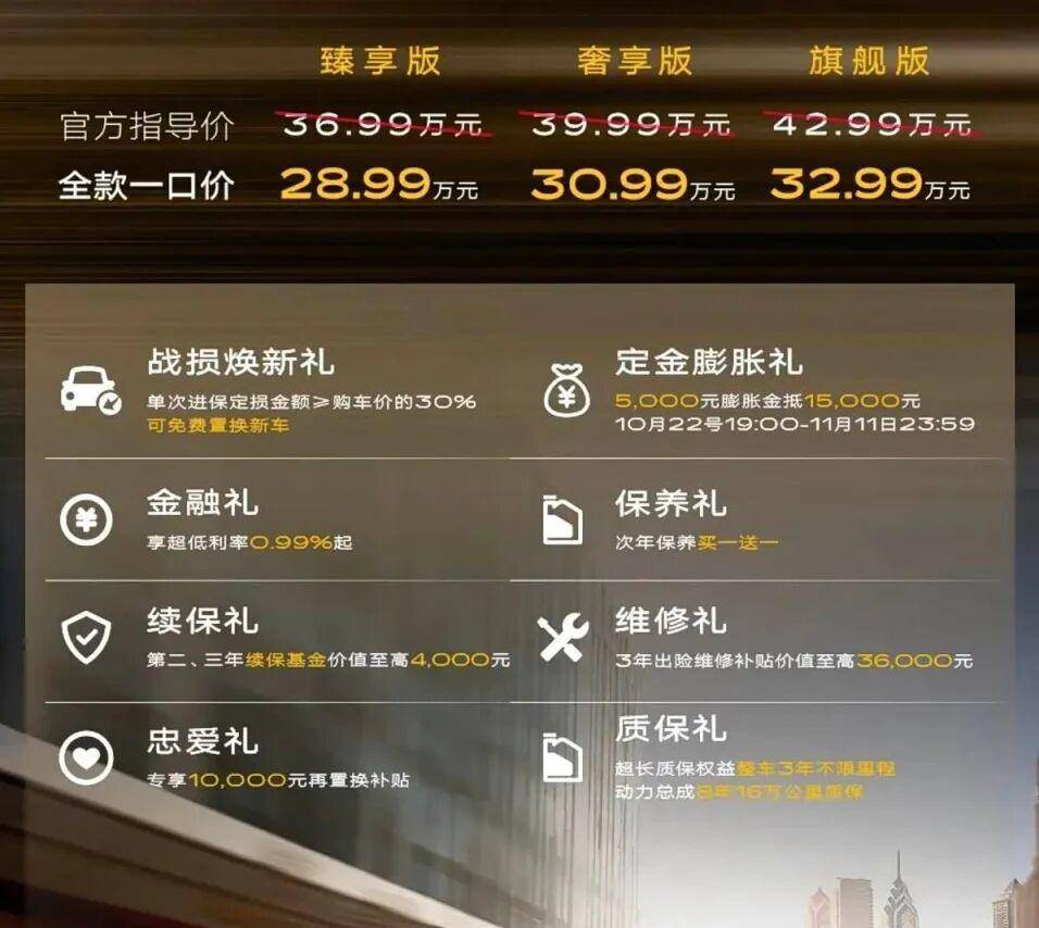 但为啥我隔壁老王要说它“求生欲强”呢?因为这车之前混得确实不咋地。上个月销量据说只有33台,惨得都快没朋友了。所以这次改款,价格上直接“掀桌子”,指导价定在36.99万至42.99万元,但全款一口价只要28.99万到32.99万元,等于官降了8到10万,这分明是大声告诉全世界:“我要吃饭!”