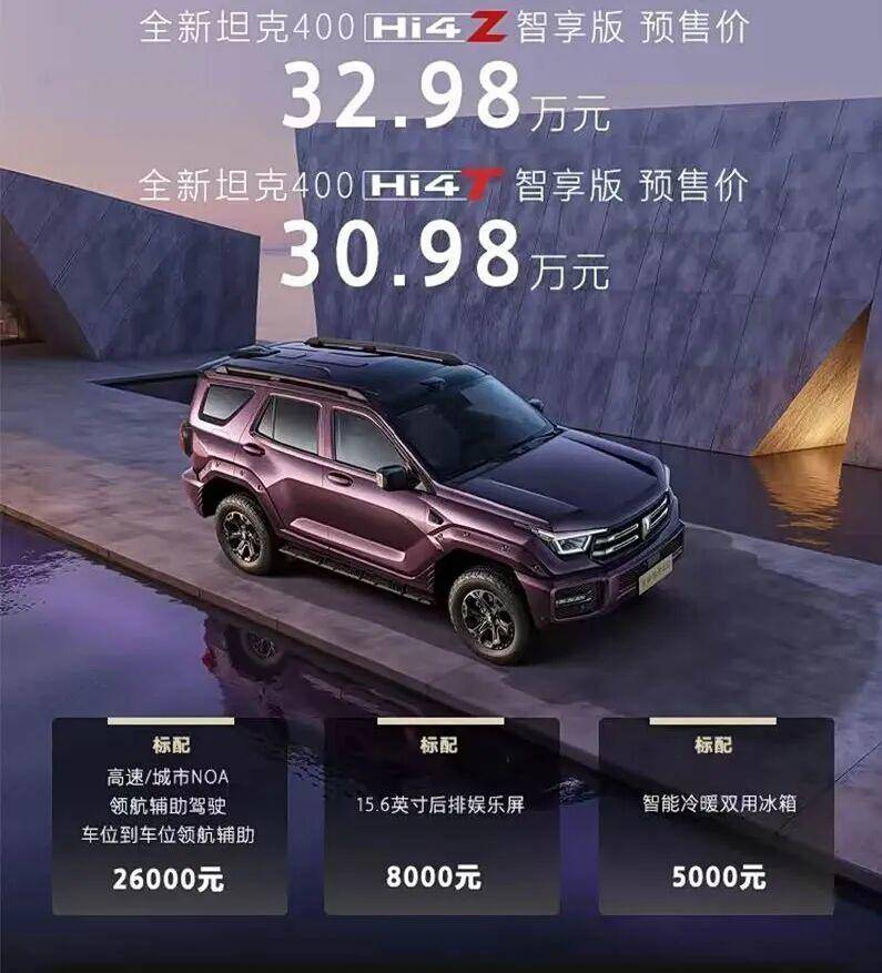 近日,坦克品牌旗下中大型SUV——新款坦克400正式开启预售。好家伙,坦克400这回改款可真下了血本啊!30.98万起的预售价,直接扛着激光雷达和4.3秒破百的招牌就跟豹5掐上了。这不光是硬派越野的升级,简直是给“方盒子车”来了场智能革命。