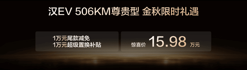此次,汉DM-i长续航版共推出4款车型,补贴后售价15.98万~18.98万元;汉EV长续航版共推出3款车型,补贴后售价17.38万~20.58万元(10月31日前完成订车可享1万元超级置换补贴)。同时,比亚迪还为用户准备了包含置换补贴在内的至高价值3.8万元七大礼遇。