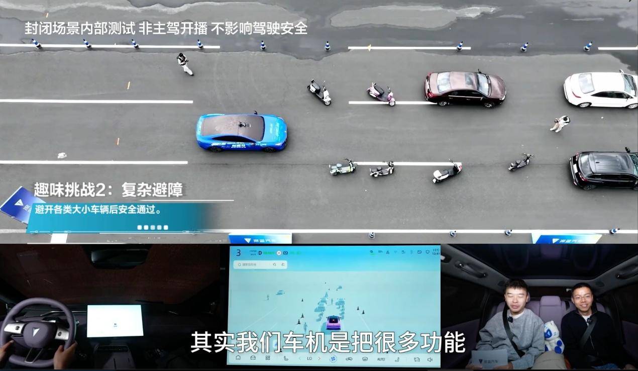 在趣味蒙眼挑战中,把人的眼睛蒙上,在封闭道路上模拟人完全没有干涉的情况下车辆的表现,让深蓝L06在锥桶迷宫、人,车等障碍物中进行避让实验,还有迷雾测试、车道识别测试等测试,最终深蓝L06的表现还不错,那这是封闭道路的测试,可能有一定的局限性,实际道路上到底行不行?深蓝L06直接在8D魔都城市的重庆进行了测试。