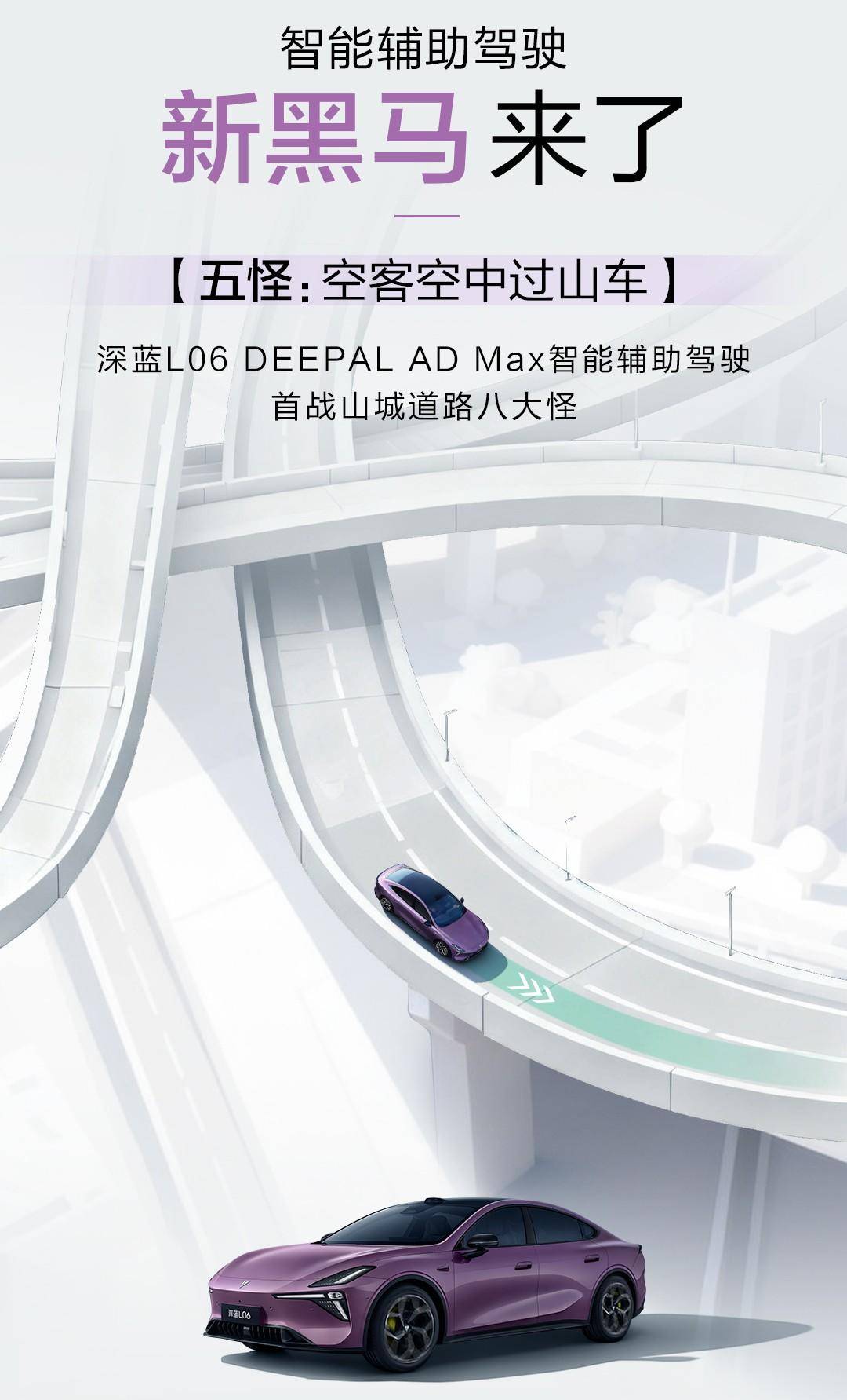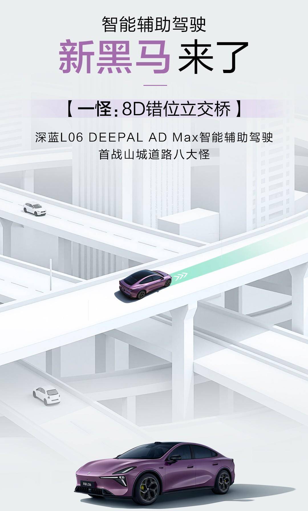 这里插个小话题,重庆为什么能被称为8D魔都城市呢?网上你应该经常能看到这样的视频,你以为你在1楼,实际上你可能在22楼,车坐电梯穿楼过、还有地下环道就跟迷宫一样,之前我还看到一个视频,地下环道里面还有加油站,我真的是服了,还有8D套娃立交桥,经历9个右转又右转,还有汽车轻轨竞速赛、主城5连发卡弯、空中客车过高楼等奇幻场景,深蓝L06在这些“地狱级”的难度挑战中也有着不错的表现。