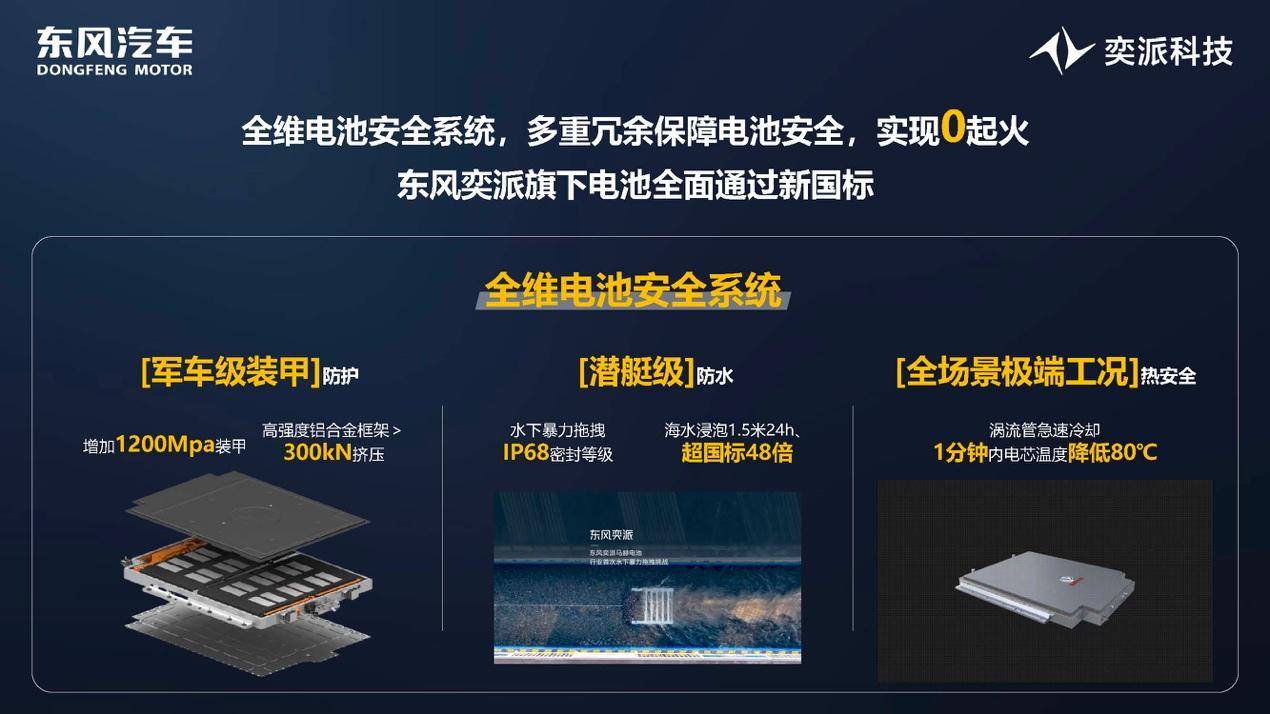 电池安全方面,多重冗余保障,实现“0起火”。构建多维电池安全系统,多重冗余确保电池安全。电池经过海水浸泡、枪击测试、高空跌落的“海陆空”三栖挑战测试,以军工级安全标准守护用户出行。目前,奕派科技旗下的电池安全远超新国标。