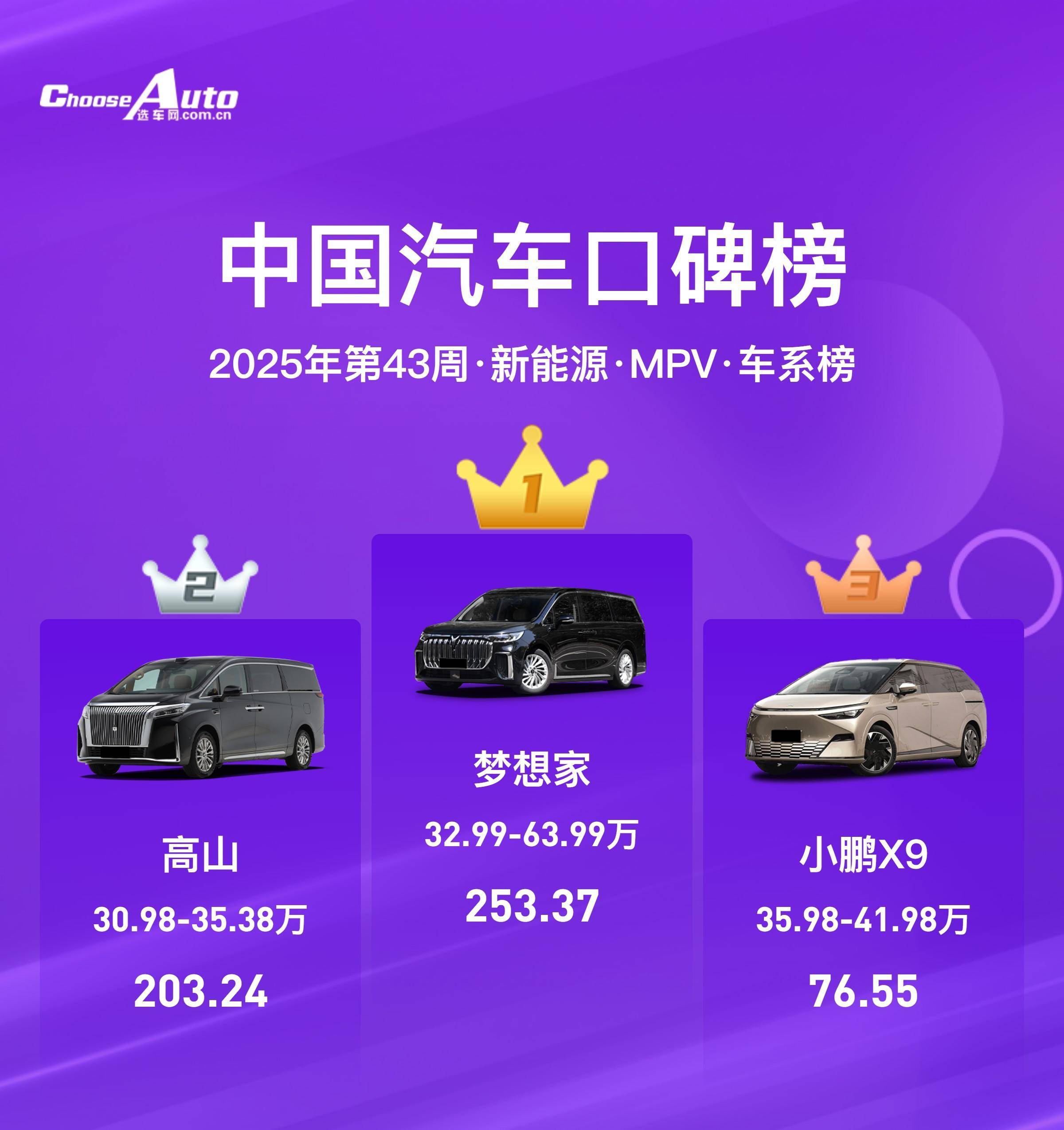 梦想家在极为宽泛的价格区间(32.99-63.99万)内获得了最高分,这说明无论是选择其中配还是顶配的用户,都对其营造的豪华、舒适或商务氛围感到满意,这对于一款MPV来说是最高级别的认可。