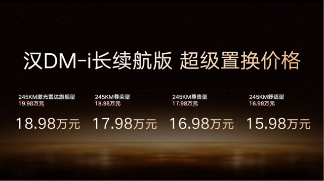 其中,汉 DM-i长续航版纯电续航提升至 245 公里,亏电油耗仅 3.44L/100km,补贴后官方指导价为 15.98 万-18.98 万元;汉 EV 长续航版共推出3 款车型,续航覆盖 635km 与705km,补贴后官方指导价为 17.38 万-20.58 万元。特别提醒:上述补贴后指导价,需在 10 月 31日前完成购车并享受 1万元超级置换补贴,属于限时优惠价格。