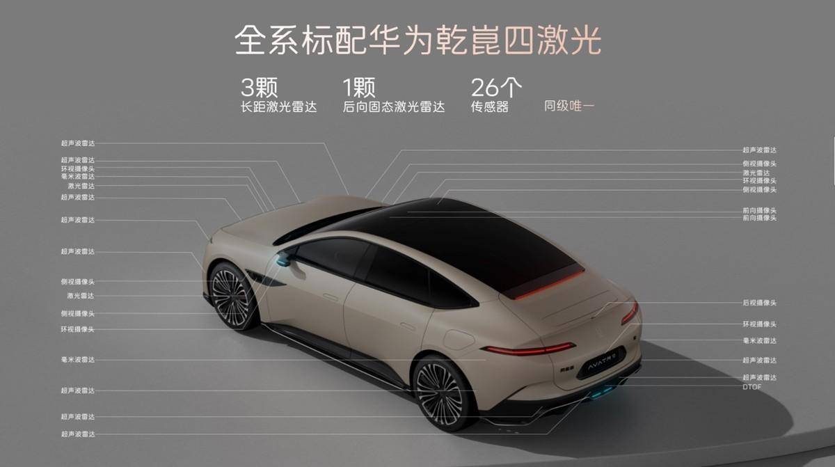 10月28日,阿维塔科技宣布,阿维塔12四激光版正式上市,推出纯电和增程双动力,共6个车型版本,官方指导价为26.99万元-42.99万元,权益后到手价为25.99万元-41.99万元。新车全系标配华为四激光雷达,增程版全系标配52kWh宁德时代骁遥超级增·混电池,以“十项全新升级、十二项同级独享”配置,重新定义30万级豪华轿车标准。