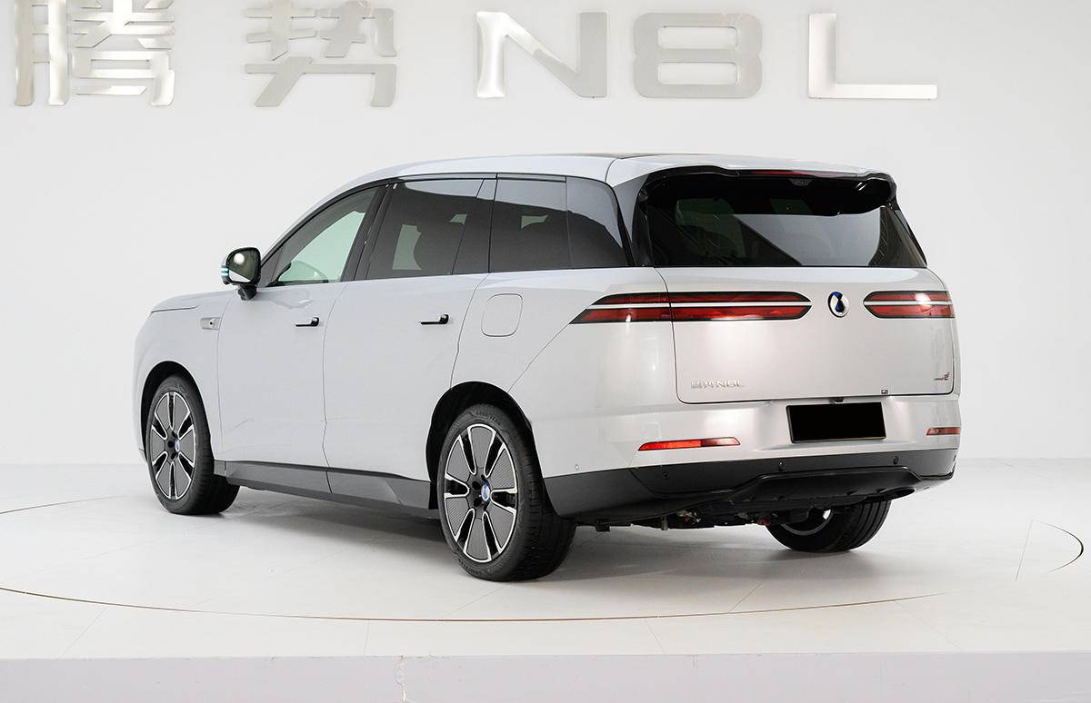 尾部的造型风格和腾势N9一致,尾灯造型有着很高的辨识度,长条形的灯组中间贯穿镀铬饰条,有着不错的设计感。