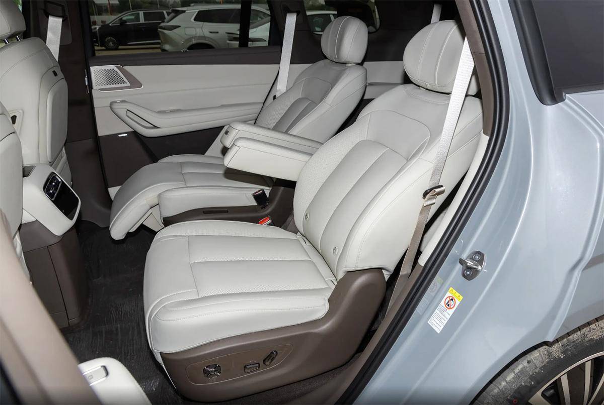 第三排的两个座椅也是能够单独前后调节以及做到和靠背的折叠的,有着不错的实用性。另外新车还会配置香氛系统、20扬声器帝瓦雷音响+杜比全景声、千里眼及哨兵模式、AR感应尾门等。