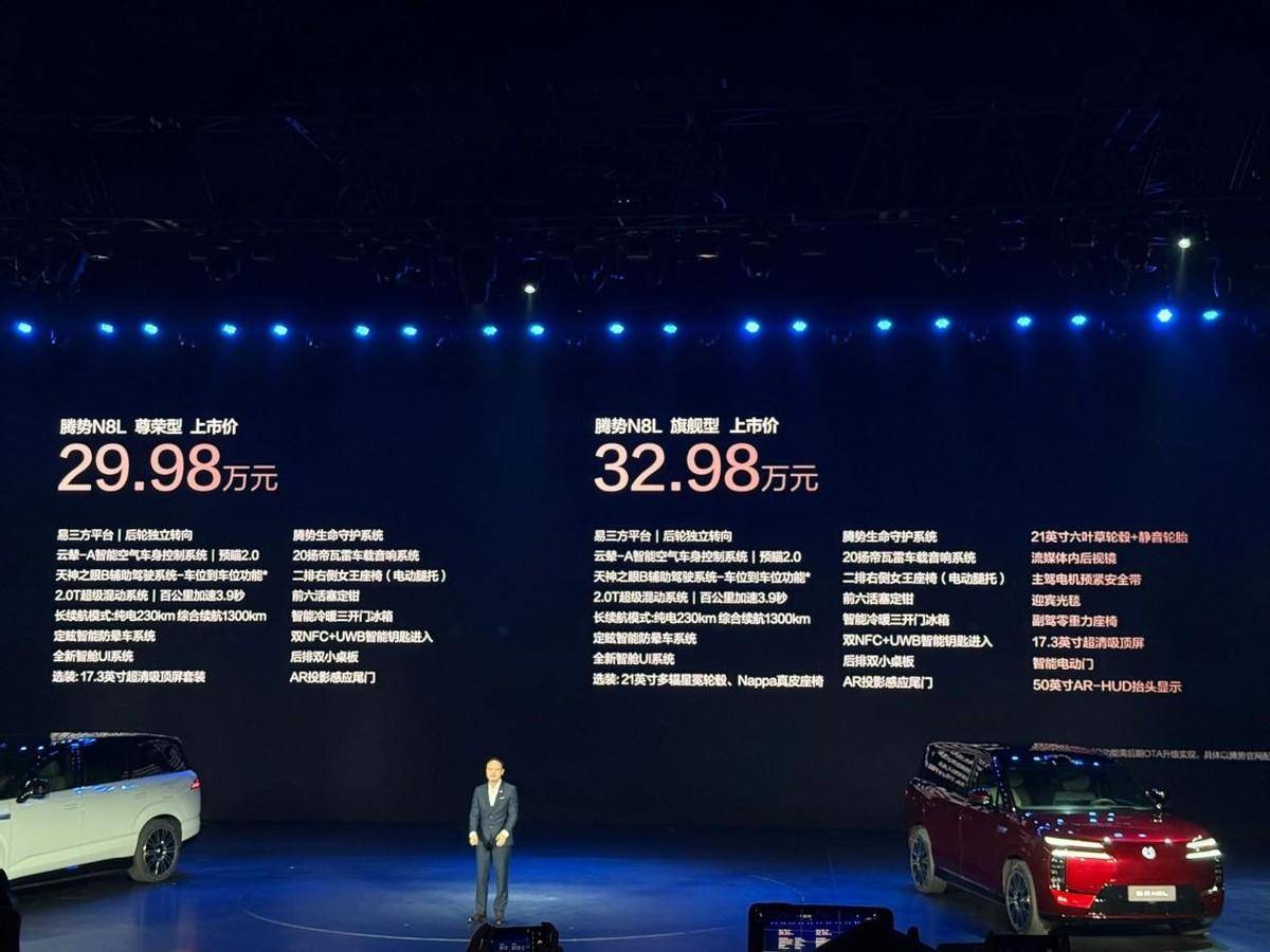 10月28日晚间,腾势N8L正式上市。这款大六座安全豪华SUV 填补了腾势品牌在30万元价格区间的市场空白,与更高端的N9形成“旗舰豪华双子星”组合,意图通过差异化的配置覆盖更广泛的用户需求。
