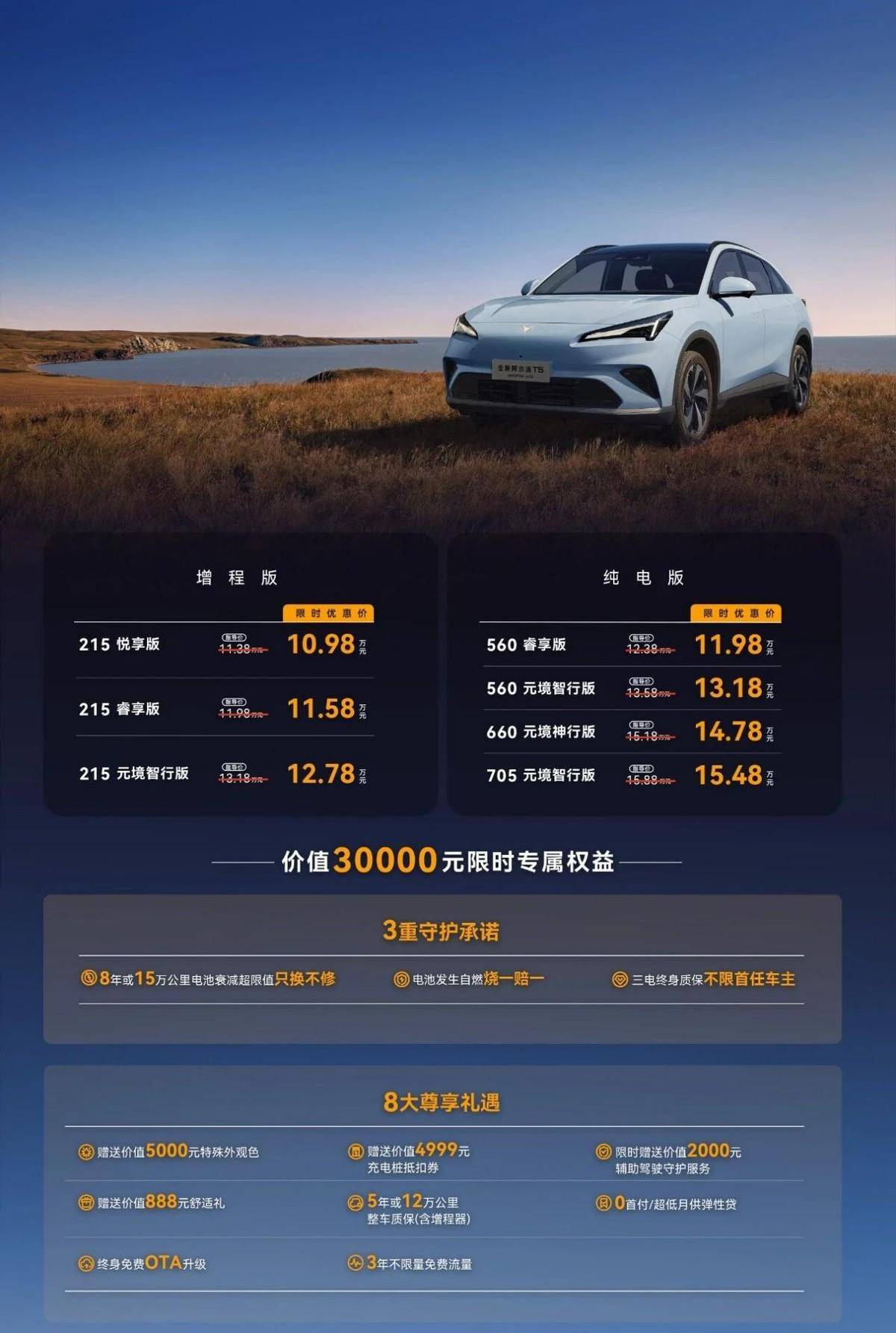 而纯电版车型则是全系搭载宁德时代电池,共有560km、660km、705km三个续航版本可供选择,续航方面给得很足。