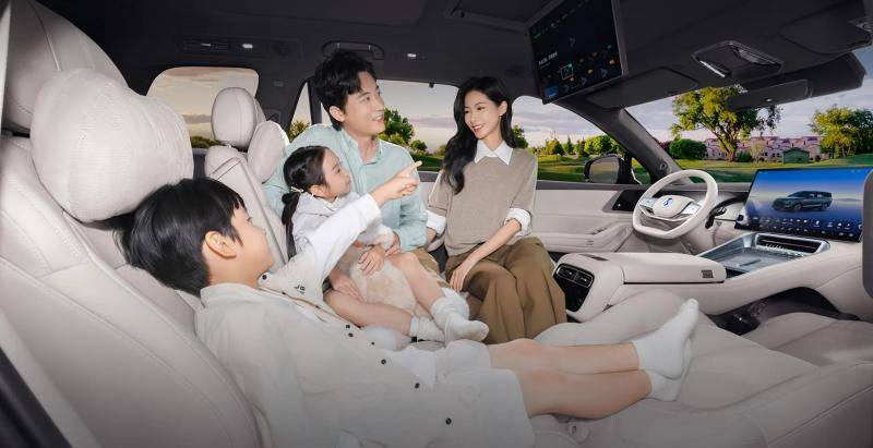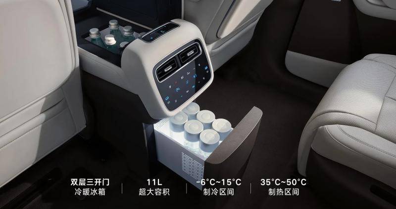 内饰部分,腾势N8L配备了多块大屏以同时满足车内所有用户的需求。包括:13.2寸全液晶仪表屏、17.3寸悬浮式中控屏、13.2寸副驾屏、17.3寸后排吸顶多功能娱乐屏以及50英寸AR-HUD显示系统+9英寸流媒体内后视镜,且这些大屏具备多屏互联功能,并可实现全场景智能语音控制、手机互联投屏等操作。为了让中控鞍座拥有更充裕灵活的空间布局,腾势N8L采用了时下流行的电子怀挡设计,并同时配备前排双50W风冷无线手机充电槽、11L智能冷暖箱。