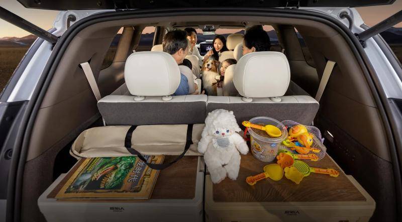 动力部分,腾势N8L采用易三方技术平台打造,其所搭载的插混系统由一具2.0T插混专用发动机+三驱动电机+插混专用刀片电池构成。其中,2.0T插混专用发动机热效率高达44.13%,最大功率输出152kW;三电机综合功率输出560kW,综合扭矩871牛米,这使得腾势N8L的0-100kph加速成绩仅3.9秒。得益于搭载了容量为46.9kWh磷酸铁锂刀片电池,CLTC工况下纯电续航里程为230公里,可做到满电通勤两周一充。另外,通过100kW快充,腾势N8L仅需19分钟即可将电池电量从30%充至80%,充电效率极高。其CLTC工况综合续航则达1300公里,可满足各种出行场景需求。