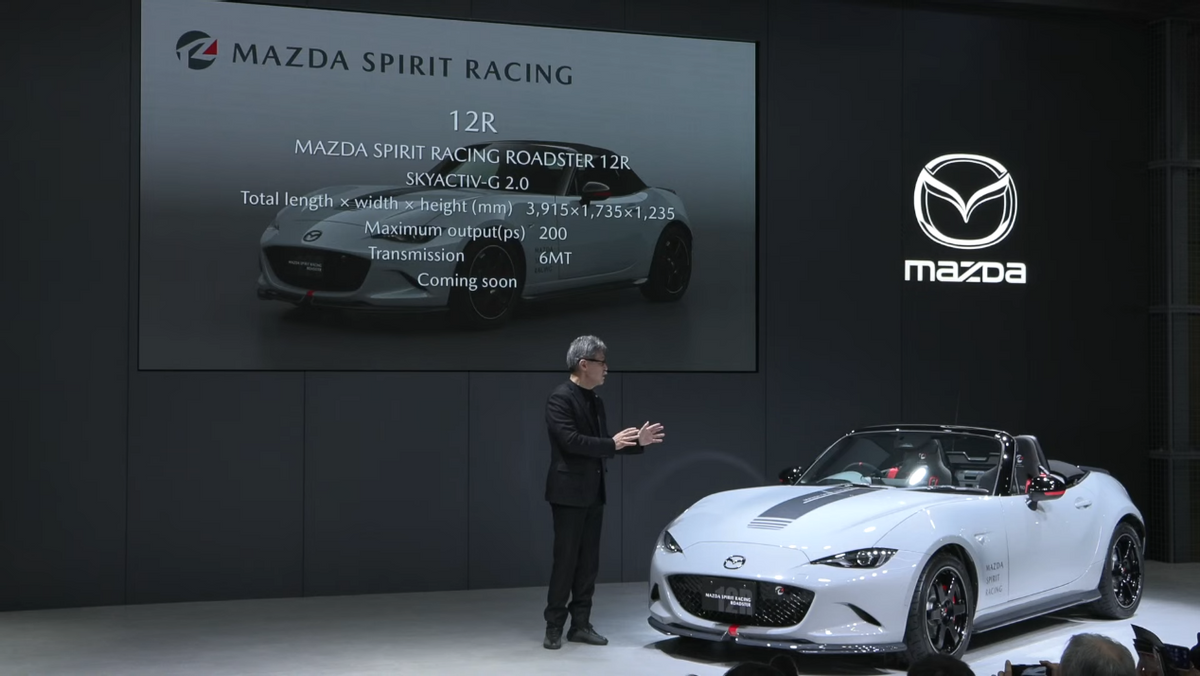 其中,Spirit Racing Roadster (基础版),是指街道合法的高性能/轻量化特别版。它是一台可以合法上路的、更加硬核的MX-5。而Spirit Racing Roadster 12R,则是指基于基础版打造的、更加极端化的“赛道专用”版本,其仍由马自达官方打造,属于Spirit Racing项目的一部分,以更为稀有的形式(限量200台)放到市场里去进行销售。