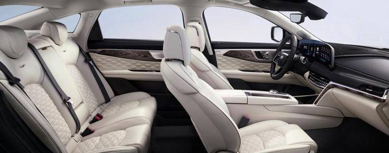 车里最抢眼的是全系33英寸9K大屏,车机是最新OTA V5.0系统。内饰新增了浅色“云端谧境”配色,用了半苯胺真皮、天然木纹和哑光铝饰条,手能摸到的地方基本没塑料感。静音方面也堆了料:双层隔音玻璃、全车32处填充发泡材料,还配了ANC主动降噪和19个扬声器的AKG音响。关上车门,确实有“私人影院”那味儿。