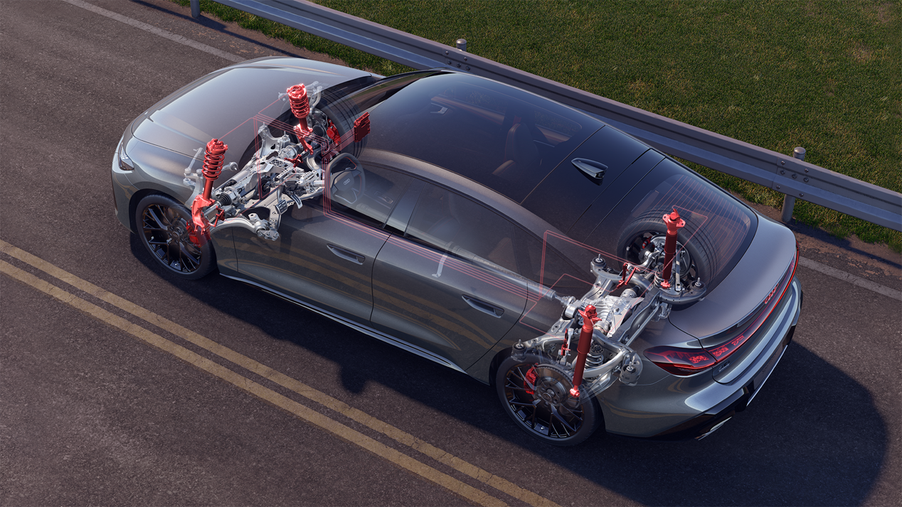 A5L Sportback的另一个颠覆性在于,它成功扮演了“技术融合载体”的角色。一方面,它坚守奥迪的机械精髓:第五代EA888发动机(最大功率200Kw,峰值扭矩400N·m)与quattro智能四驱系统,奠定了其驾控的硬核基础。前后五连杆悬挂与新一代CDC悬架的搭配,确保了德系豪华车应有的行驶质感。